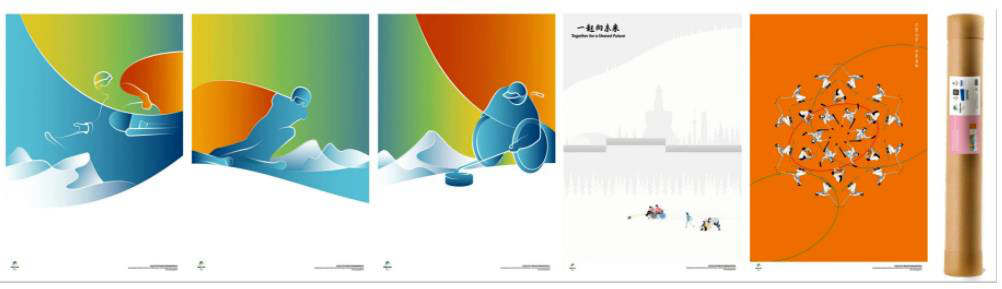 组合3,北京2022年冬奥会宣传海报(2),共6张,售价296元/套(含收纳桶)。